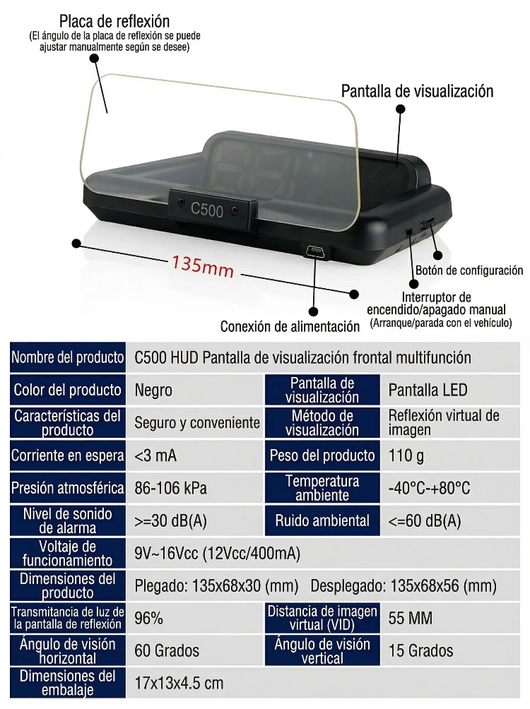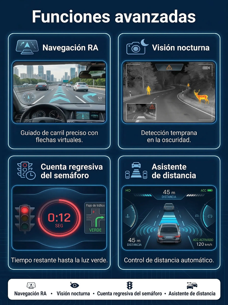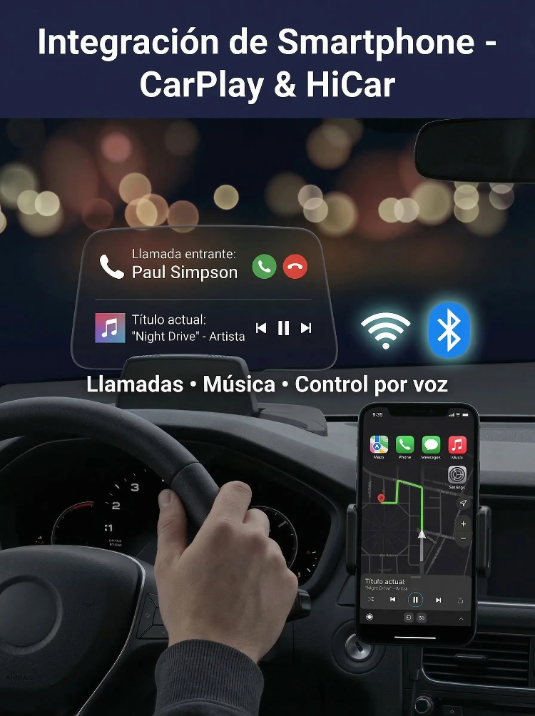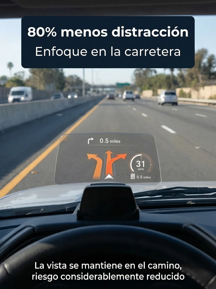 ¡Sin cambiar de coche! Ten el GPS, tu velocidad, alertas y hasta tu cel en tu línea de visión | Pantalla HUD Head-up Display HD para Auto