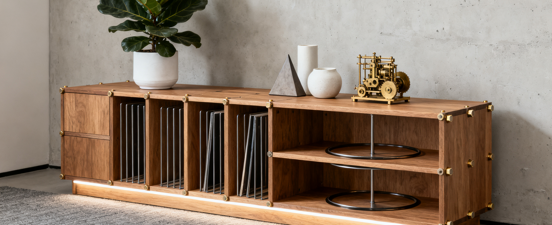 Kein kaltes Lagerhaus voller Produkte, sondern ein Konzert des Lebens aus Metall, Holz und Keramik – jedes Teil logisch, jedes Detail warm und der sanfte Alltag entfaltet sich in einem rationalen Rahmen.
